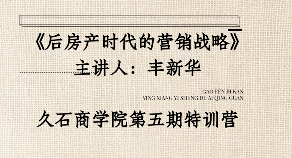 本次久石商學院第五期培訓內容豐富、觀點深刻,為學員們帶來了后房產時代營銷戰(zhàn)略的全新視角和實用建議。及時轉換思路,在市場趨勢下乘風而行、乘勢而上,希望早日實現(xiàn)后房產時代建材行業(yè)的逆襲!