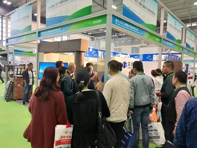10月15日,2019湖南(長沙)裝配式建筑與工程技術(shù)博覽會在長沙國際會展中心拉開帷幕。久石貼片石在會場亮相,吸引了眾多客商的駐足體驗。